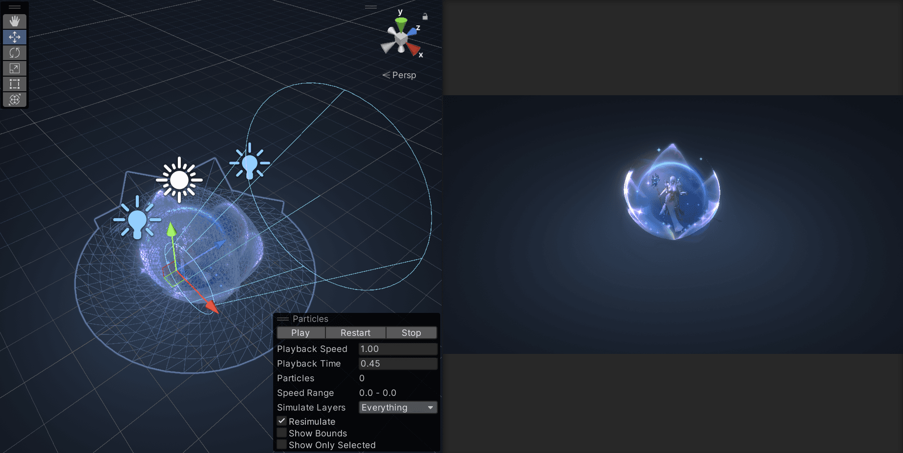 Multi-Phase Dissolve System: Developed a noise-based dissolve logic within the shader to manage the smooth dissipation of the effect, synchronized with the particle lifetime.